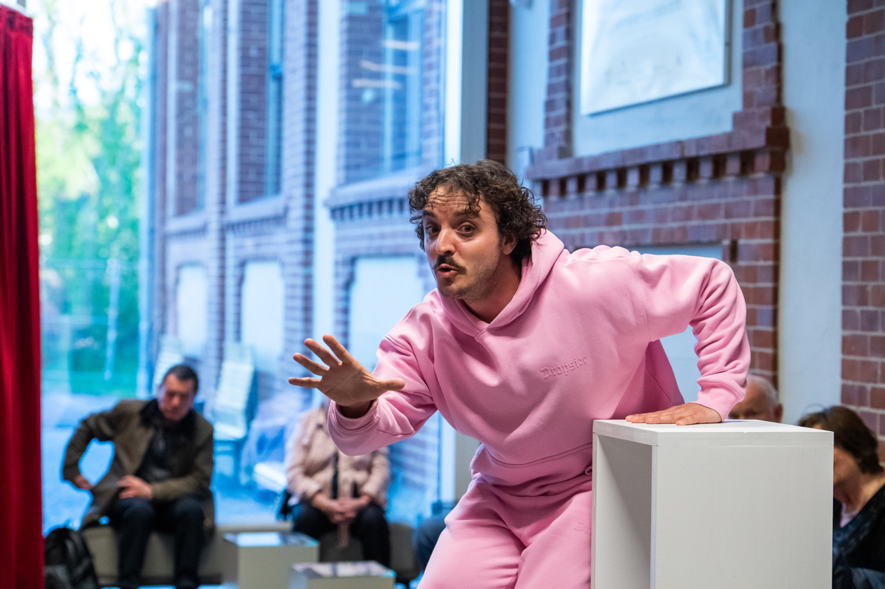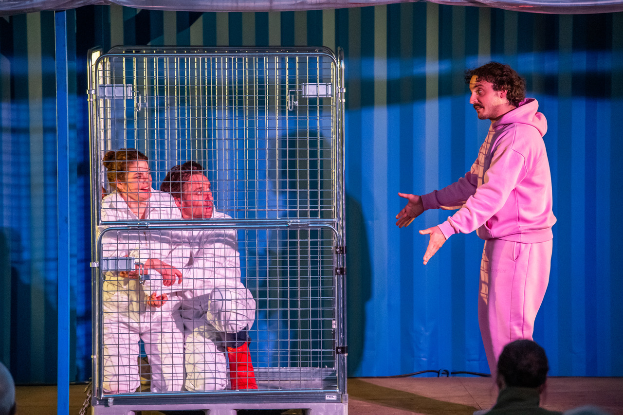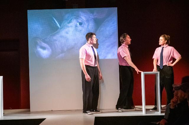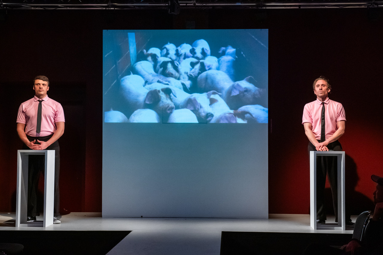 Da sich das Theater Naumburg seit April 2025 in einem alten Schlachthof befindet, lag es nahe, sich der Frage zu widmen, wie man sich im Zeitalter industrieller Fleischproduktion das „Familienleben“ eines Schweines vorstellen darf.