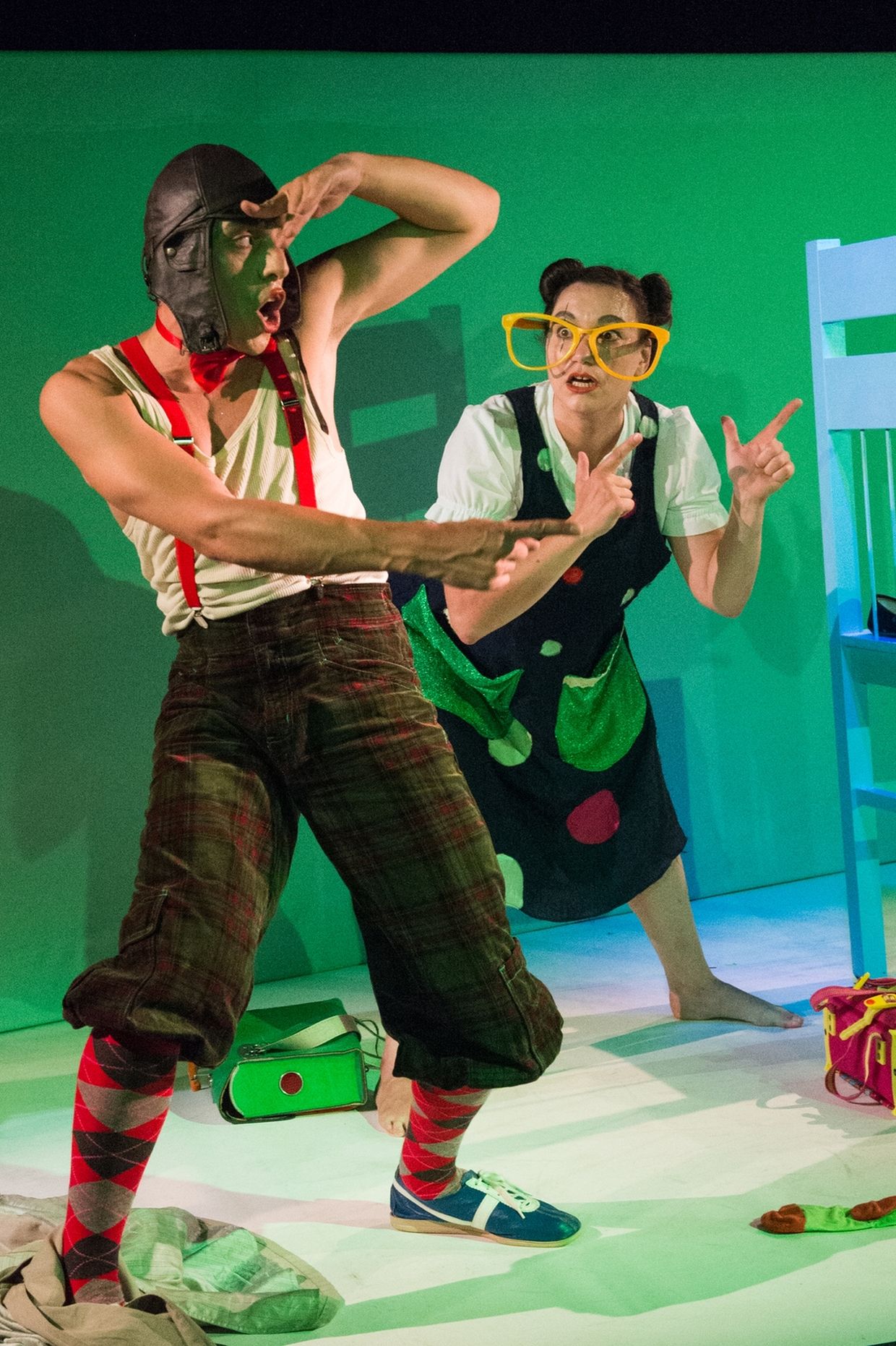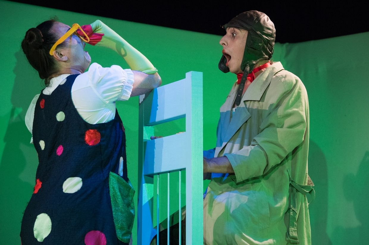 Sofort ist Schluss mit Langeweile und Trostlosigkeit. Sie können mit ihrer Vorstellungskraft dieses Möbelstück in alles verwandeln, was ihnen in den Sinn kommt. Er dient einer Luftreise, darf als Ladentisch herhalten, verwandelt sich in einen Schlitten, um schließlich als Raumschiff in Erscheinung zu treten. Spielend vertreiben sich Schwärzlich und Klops die Zeit, wobei sie ihr Publikum auf eine Reise bis ans Ende der Welt - oder gar noch weiter - mitnehmen.