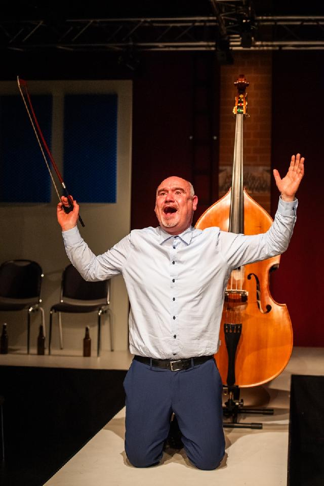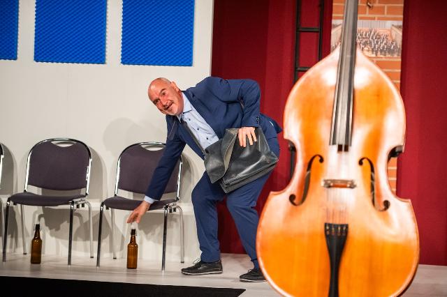 Ein in die Jahre geratener Berufskontrabassist berichtet in diesem berühmten Monolog über die Höhen und Tiefen des Orchesterlebens, während er mit Bier gegen den immer drohenden Feuchtigkeitsverlust in seinem schallgedämmten Zimmer kämpft. Der verbeamtete, ewig unzufriedene Künstler berichtet vom Alltag mit dem größten, unhandlichsten und unsolistischsten Instrument der Welt, von seinen Nöten und seinen Träumen, von seinem Minderwertigkeitsgefühl und – von seiner heimlichen Liebe zu der jungen Sopranistin Sarah. Wird er es wagen, ihr seine Liebe an diesem Abend zu offenbaren?