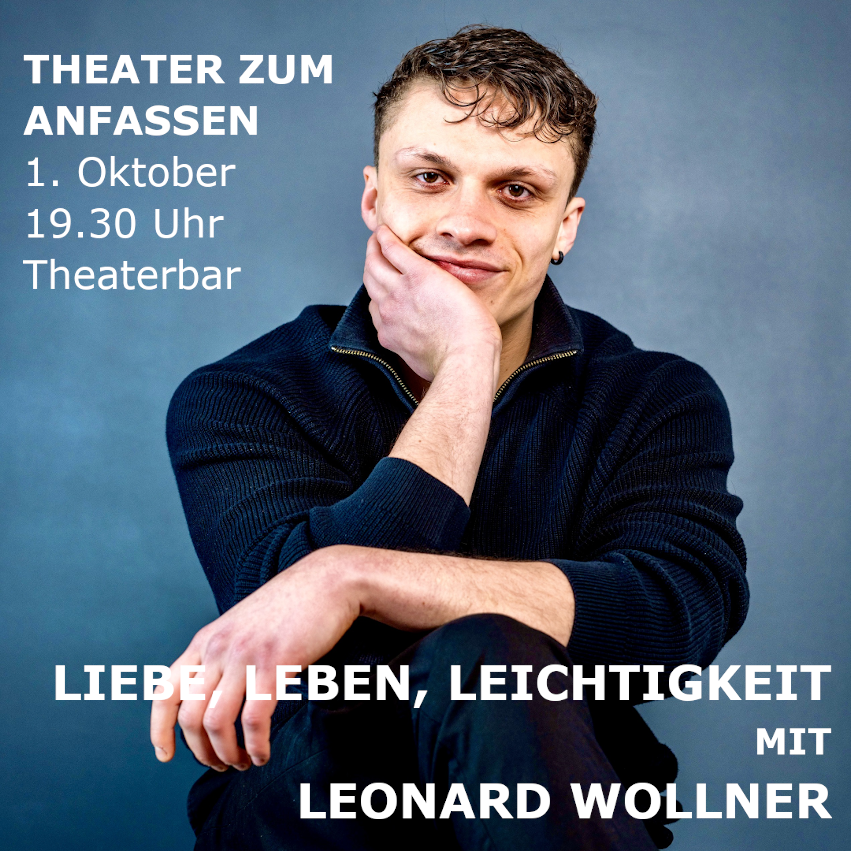 Manche Geschichten brauchen keine Rolle – nur Musik, Worte und einen Moment.Am 1. Oktober, um 19.30 Uhr, zeigt sich Leonard Wollner, Schauspieler am Theater Naumburg, in der Theaterbar während der Mittwochsreihe „Theater zum Anfassen“ von einer ganz persönlichen Seite: mit eigenen Songs, die er selbst geschrieben, komponiert und am Klavier begleitet.